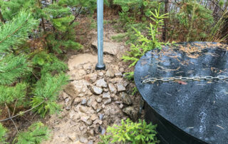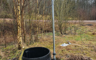 Installation of bases for the pole to the solar panels that supply the measurement equipment that measures water levels. Snap Base™ 60 mm was used and installed by hand. Existing masses were used as back fill.